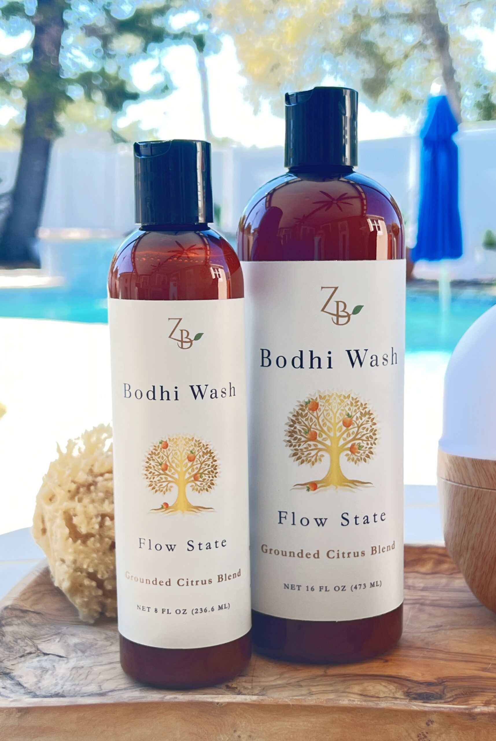 Flow State body wash opens bright and clear with vibrant citrus from sweet orange and bergamot, softening into gentle geranium before settling into the grounding depth of frankincense with a subtle hint of patchouli.